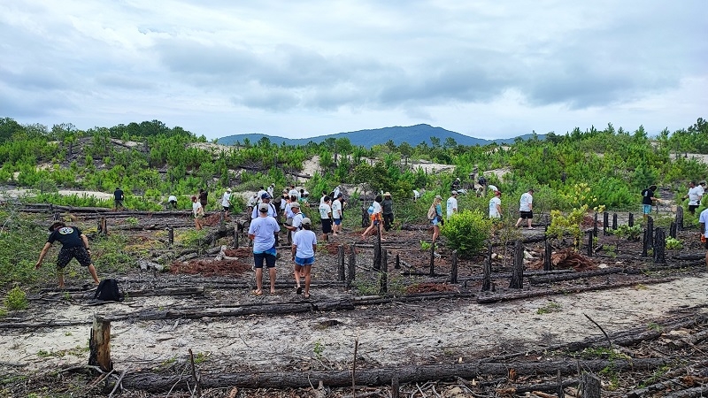 A atividade contou com a participação de cerca de 75 voluntários e resultou na remoção manual de aproximadamente 1.500 indivíduos jovens de Pinus spp., espécie exótica invasora considerada uma das principais ameaças às restingas da Mata Atlântica, além do plantio de 113 mudas de 10 espécies nativas, contribuindo diretamente para o avanço do processo de regeneração ecológica da área manejada.