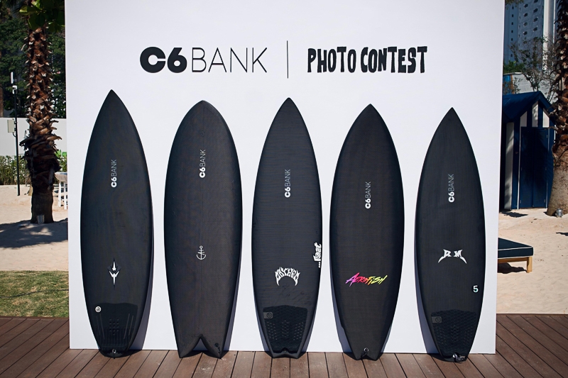 Primeira ação do C6 Bank no universo do surf reúne quiver full carbon inspirado no cartão C6 Carbon Black, collab inédita de boardshort com a TVB Shorts e um campeonato inovador que consagra a conexão entre surfistas e fotógrafos