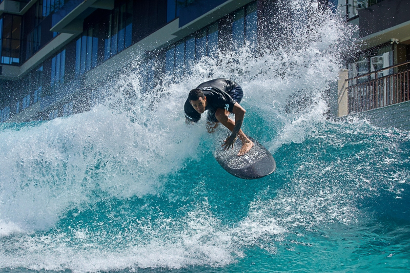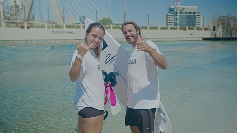 Os frames da dupla misturam técnica, leitura de onda, timing preciso e um olhar artístico apurado, tudo com uma composição incrível da cidade de São Paulo, conectando as ondas perfeitas e constantes da piscina com a capital paulista.