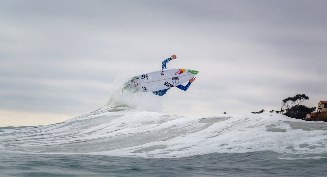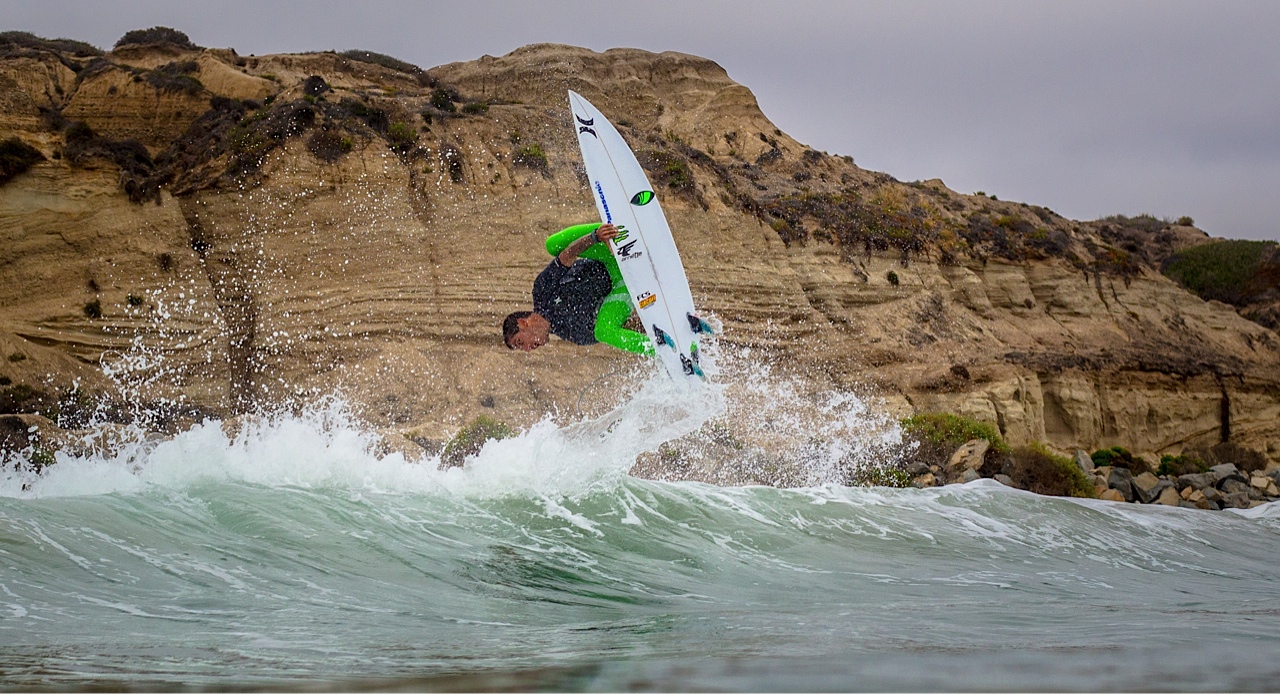Adriano de Souza com muito surf no pé em San Clemente State Park. Crédito: Marcio Canavarro.