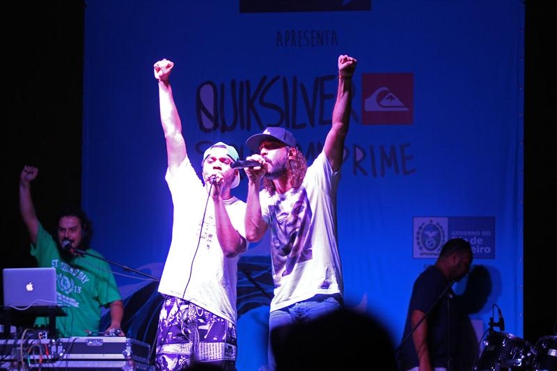 23/Mai/2014 - Karol Lopes - Saquarema - Rio de Janeiro - BrasilPôr-do-sol, público lotando as areias e boa música no palco. Esse foi o cenário do final do terceiro dia do Quiksilver Saquarema Prime. O rapper Gabriel o Pensador, que tem acompanhado o evento desde o início em Itaúna, levantou a galera com um repertório variado e refrões bem conhecidos, que embalaram toda uma geração e ainda são cantados por muita gente como Cachimbo da Paz, 2345meia78, Retrato de Um Playboy e Palavras Repetidas.