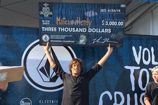 Sobrinho de Guilherme Herdy, ex-integrante da elite mundial, Mateus avançou com ótimas atuações e atropelou os norte-americanos Nick Marshall, Robert Grillho e Kade Matson na decisão. Além de terminar no topo do pódio, o brasileiro ainda conquistou o status de revelação do evento.