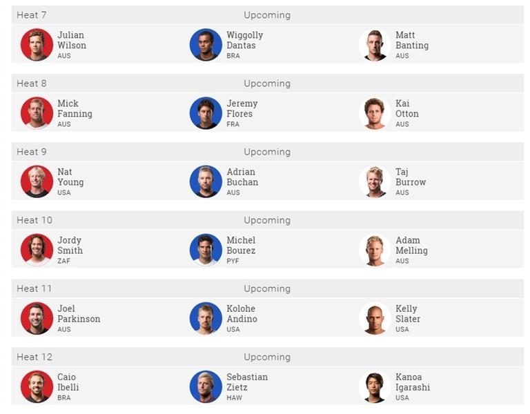Fanning já aparece inclusive na lista de confrontos em Fiji. Ele fará a sua estreia na oitava bateria da primeira fase diante do francês Jeremy Flores e do também australiano Kai Otton, que desistiu de vir ao Rio de Janeiro pelo temor do zica vírus. Todos os confrontos foram definidos. O Brazilian Storm será representado por 10 surfistas na Oceania.