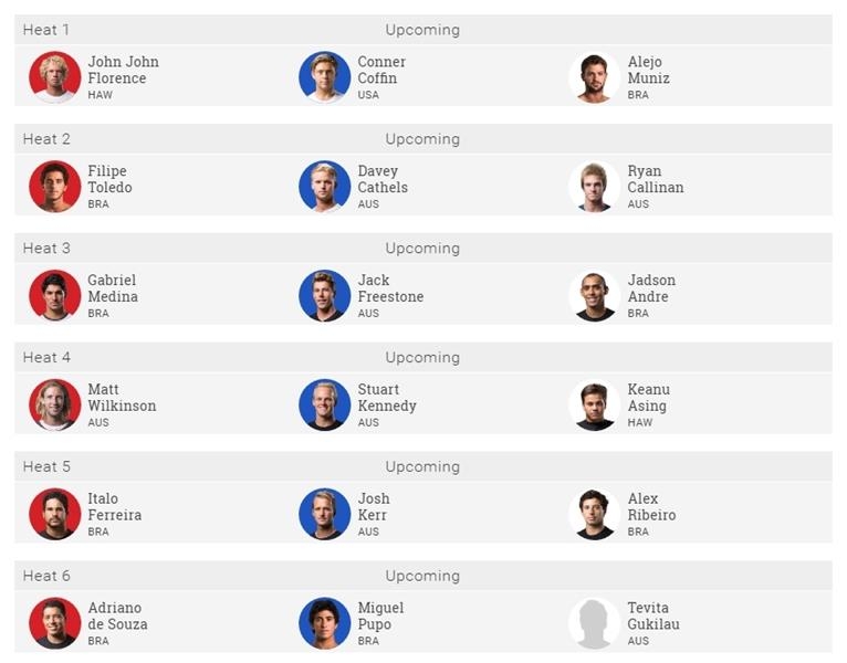 1: John John Florence (HAV) x Conner Coffin (EUA) x Alejo Muniz (BRA)