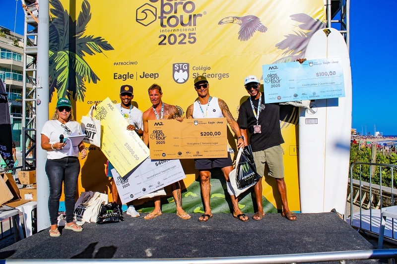 Terminou no sábado (29) a etapa brasileira do circuito latino-americano Olasprotour. O dia teve boas ondas com cerca de 1 m na Praia da Macumba. No total, 12 atletas conquistaram títulos e se juntaram aos 4 que venceram na sexta (28) na festa do pódio.