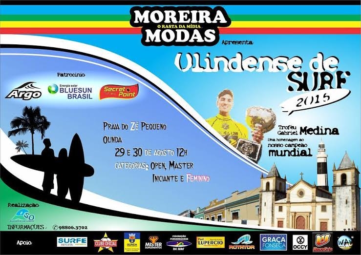 O Olindense de Surf 2015 tem apresentação da: MOREIRA MODAS, patrocínio da: ARGO / SECRET POINT E BLUE SUN BRASIL/ Energia Solar. Apoio da Prefeitura de Olinda / Clube Oficial / Rotator /Surfe Nordeste / Graça Fonseca / Wave Grip / OCCY / Professor Lupercio / Mister Suplementos / Way Vídeos / Federação Pernambucana de Surf.