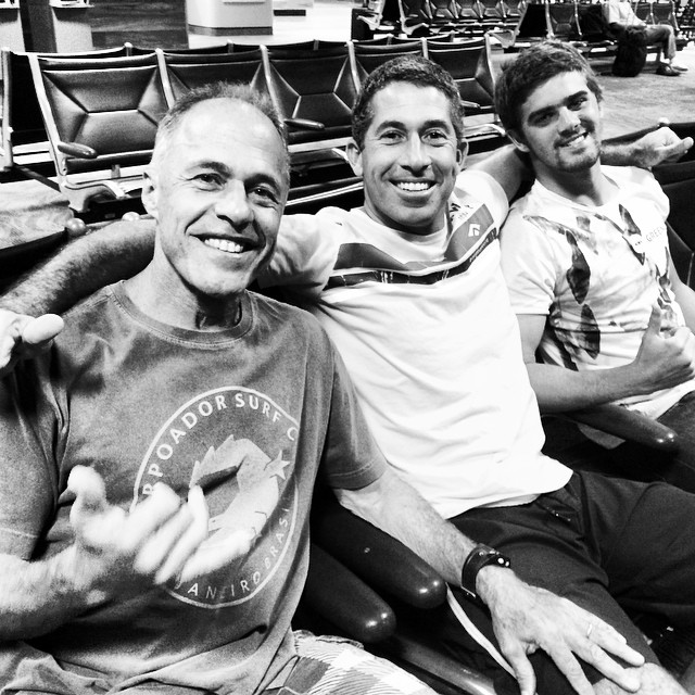 Ontem, o carioca partiu nessa missão ao lado dos baianos Danilo Couto e Lapo Coutinho, resultando em uma união de três gerações do surf de ondas grandes do Brasil.