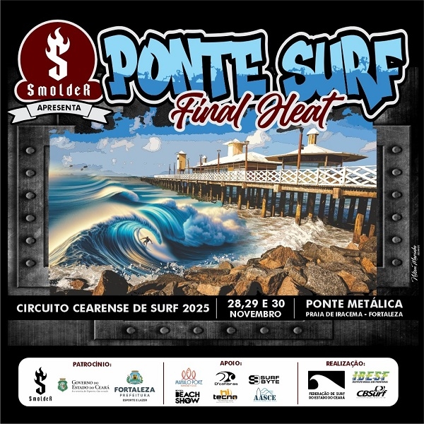 27/Nov/2025 - George Noronha - Ceará - BrasilFORTALEZA, CE – A contagem regressiva chegou ao fim! A comunidade de amantes e simpatizantes do surf no Ceará e em toda a Região Nordeste está convocada para testemunhar a consagração dos grandes nomes do esporte em uma das mais aguardadas e decisivas etapas do ano. Nos dias 28, 29 e 30 de novembro, a lendária Ponte Metálica, na Praia de Iracema, em Fortaleza, será palco do Smolder Apresenta: Ponte Surf Final Heat, a última e mais eletrizante etapa do Circuito Cearense de Surf 2025!