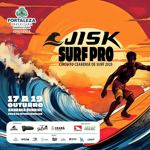 A Secretaria de Esporte e Lazer da Prefeitura de Fortaleza Apresenta JISK Surf Pro 2025: Segunda Etapa do Circuito Cearense de Surf 2025 conta com o patrocínio de Jisk, Monster Energy, Yobem e Governo do Estado do Ceará, através da Secretaria do Esporte (Sesporte). Apoio: Mahalo Poke, Barraca Sunrise, D'Cofibras, Giga+, Revista Beach Show, Surfbyte, Novatim Surf School, Aasce e Cbsurf. Realização: Federação de Surf do Estado do Ceará-FSEC e Instituto Brasil Sem Fronteiras-IBESF.