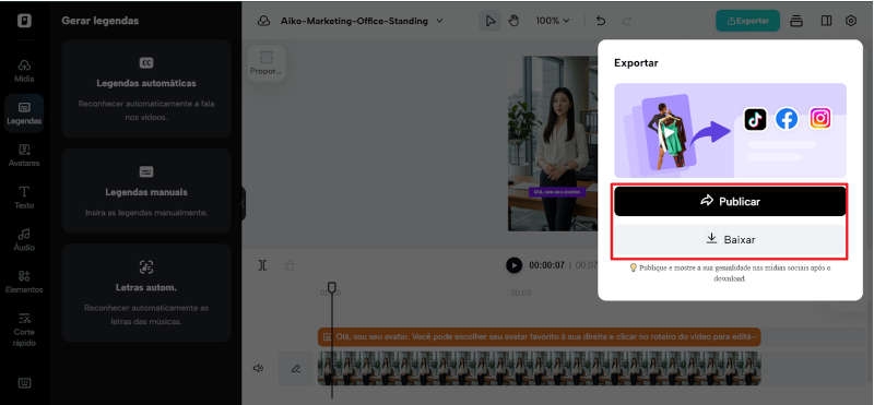 Passo 3: Baixe e compartilhe seu vídeo com avatar