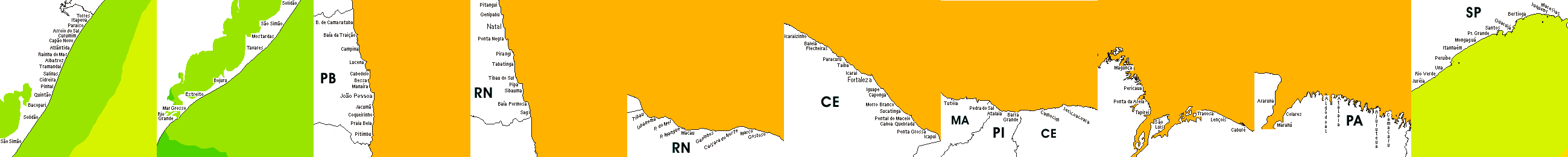 * Temperatura da superfície do mar perto da costa. Diferenças podem ocorrer dentro das baías e perto da foz dos rios, devido à influência das águas costeiras.