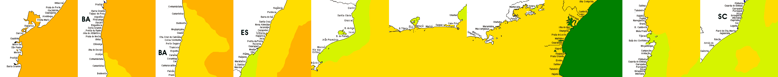 * Temperatura da superfície do mar perto da costa. Diferenças podem ocorrer dentro das baías e perto da foz dos rios, devido à influência das águas costeiras.