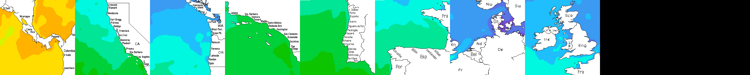 cores do gráfico: potência das ondas, Kilowatts por metro (kW/m)